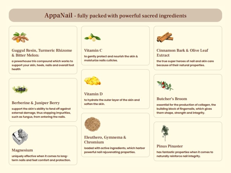 Appanail is formulated with powerful natural ingredients, each with a specific function to improve the health of nails and feet. Let’s look at some of the main ones:
